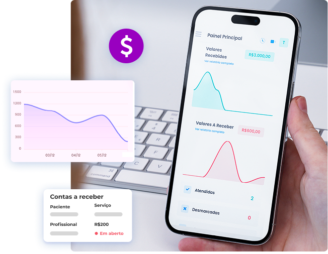 Controle as finanças do seu consultório com relatórios precisos e emita recibos.